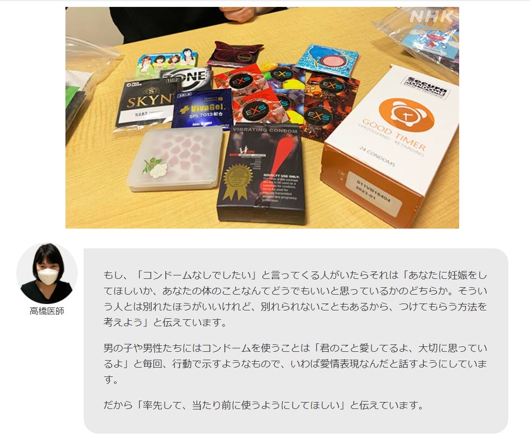 いつも本プロジェクトにご協力いただいている高橋幸子医師(通称:サッコ先生)のコンドーム関連記事がNHKのWEB特集「もっと知りたい」で公開されています。