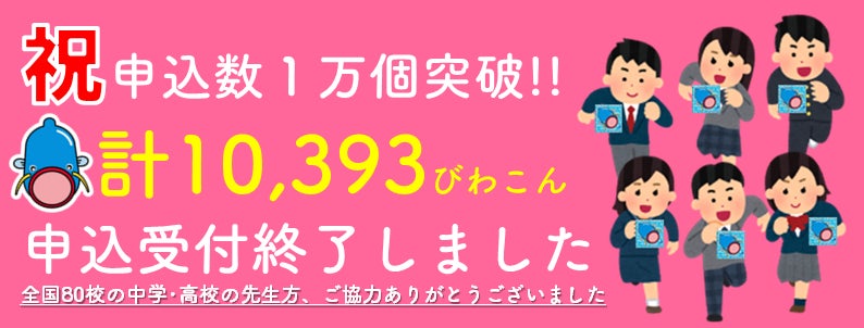 この度、本プロジェクトは全国約80校にお申し込みをいただき申込累計10,393個で申込受付終了を迎えたことをご報告いたします。