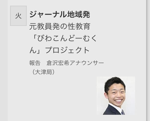 約2年間、丁寧に取材してくださったNHK大津放送局の倉沢アナは、実際の講演会に幾度も足を運び、時にはペアワークにも参加し、その姿勢に学ぶことがたくさんありました。どんな話が聞けるのか私も本当に楽しみです。