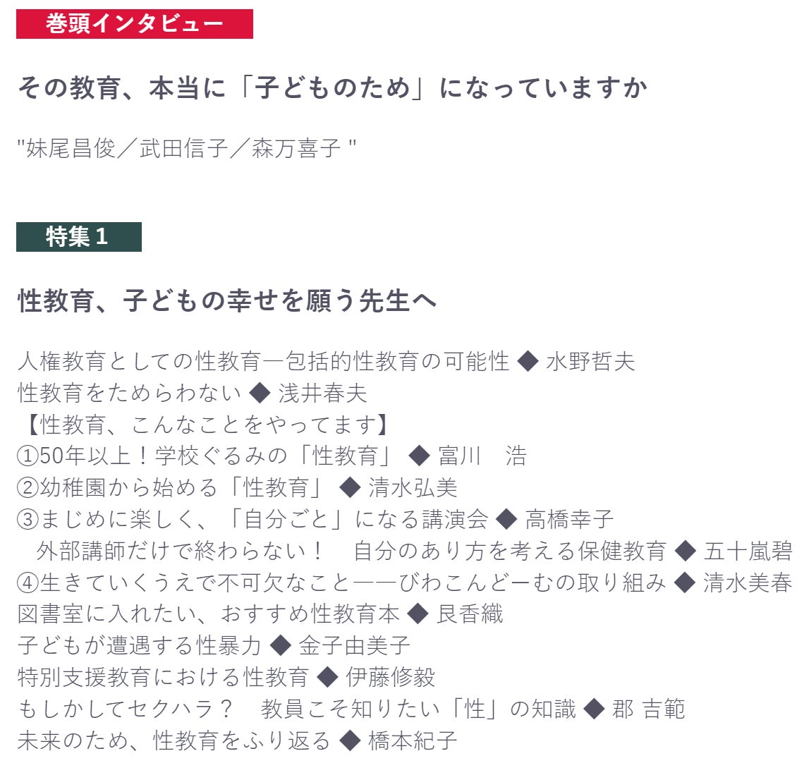 特集1:性教育、子どもの幸せを願う先生へ