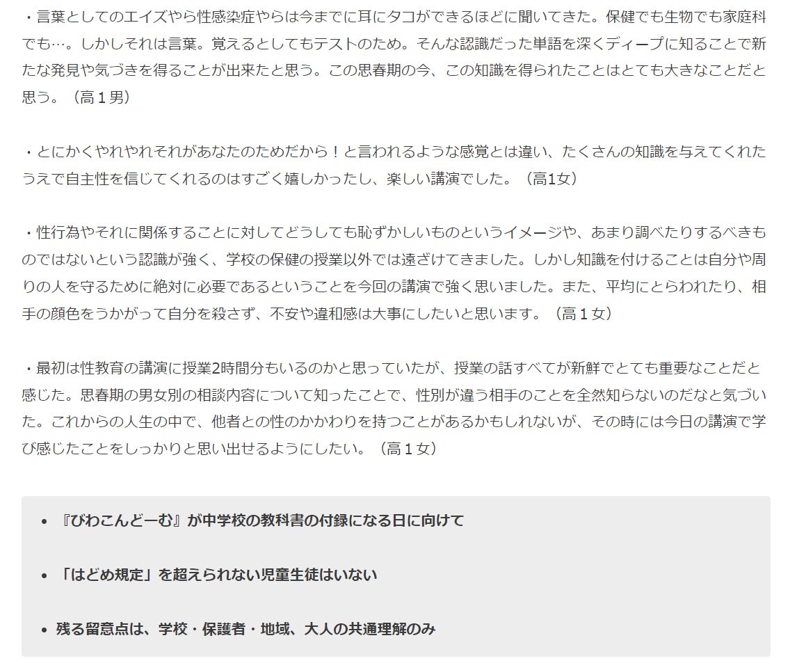 【令和の性教育アンケート調査報告】~びわこんより愛をこめて~ 全国81校1万人の中学生・高校生にコンドームをお届けしてわかったこと―― 1201世界エイズデー公開『びわこんレポート2023』