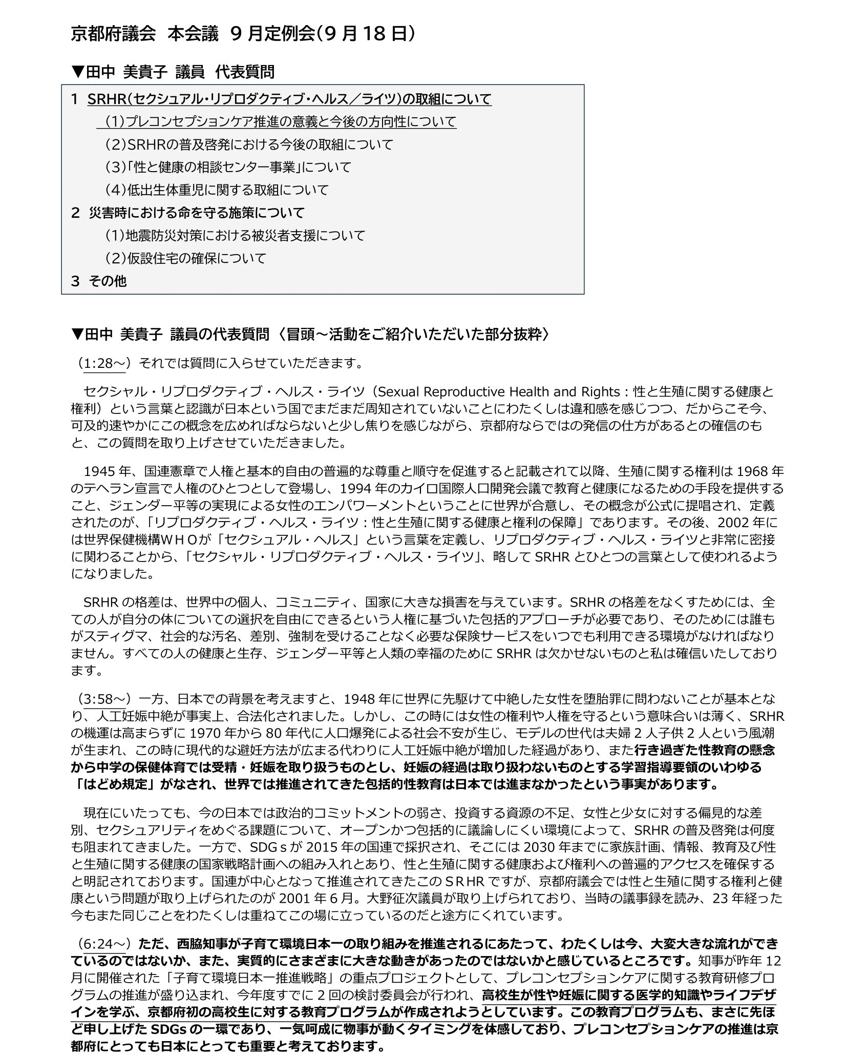 田中美貴子議員代表質問:https://www.youtube.com/watch?v=hNmD21V3c2M