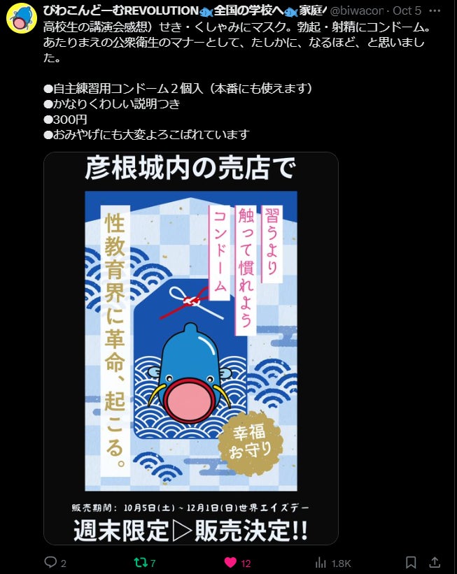 このあらゆる場面で「学校性教育の当たり前がすでに変わってきた」「コンドーム装着学習くらいは義務教育でやっておくに越したことはない」「まだびわこんどーむ知らないの?」と言いまくっています。
