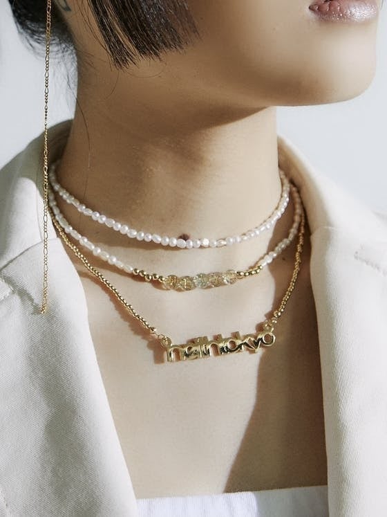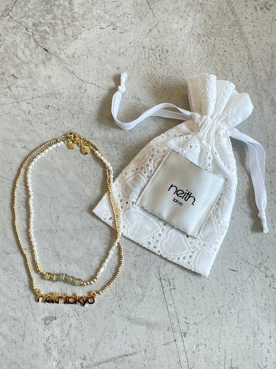 「neith.」初のオリジナルプレートのロゴネックレスと2本セットでお届け致します。