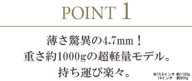 (※14インチは約900g、15.6インチは約1100g)