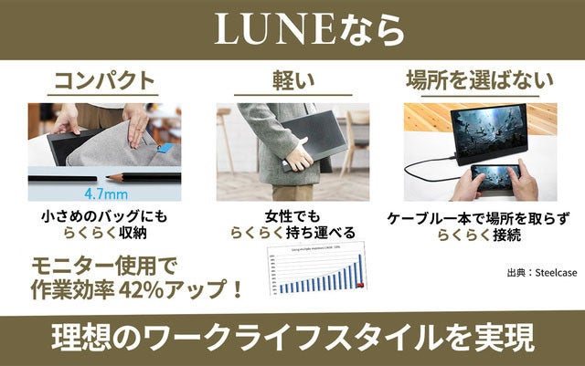 好きな場所でデュアルディスプレイを実現できる【LUNE】で、あなたの生活に革命を。