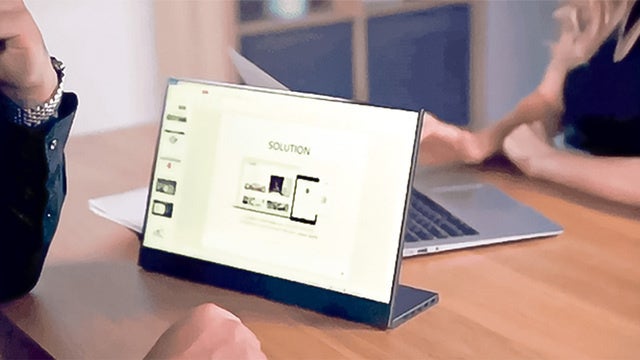 営業などで持ち歩けば、商談相手に【LUNE】のモニターを見せながらプレゼンできます。