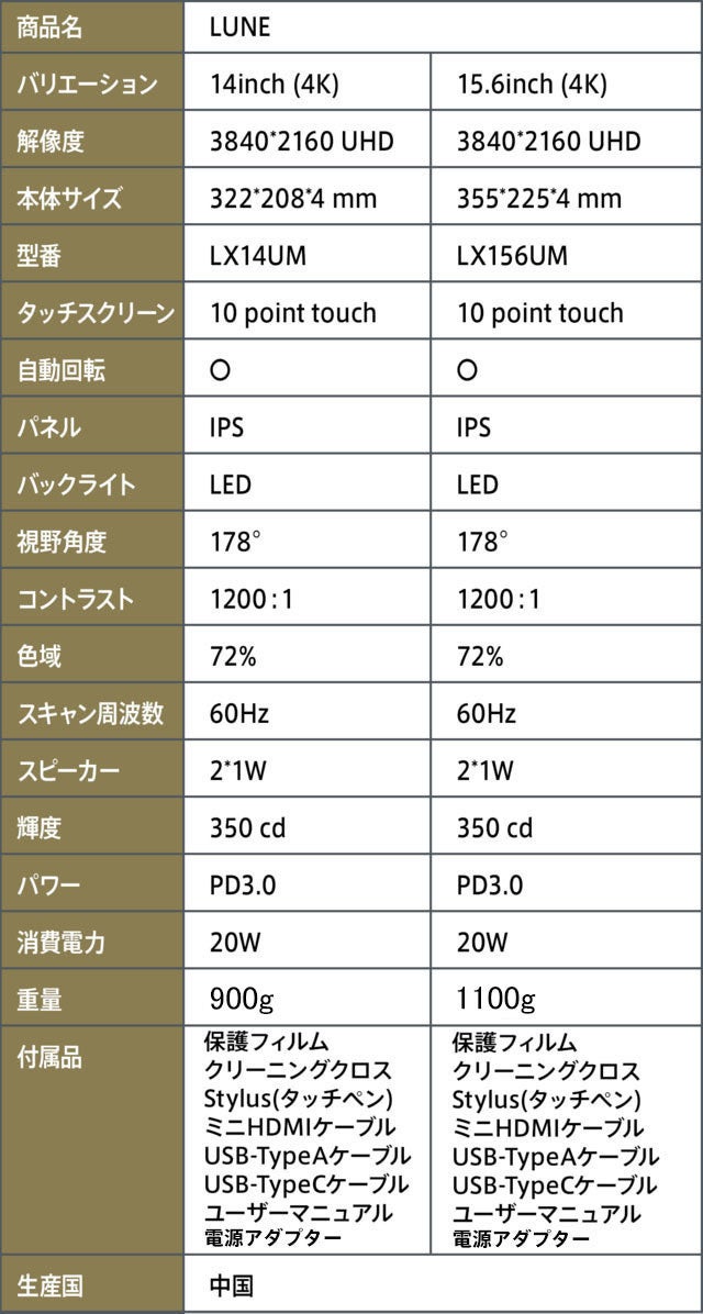 【LUNE(ルーン)】はMacOSをはじめ幅広いOSに対応した、タッチペン対応の非常に新しい4K高画質モバイルディスプレイです。