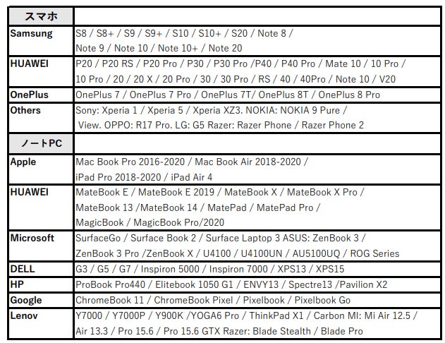 ■確認済み対応デバイス