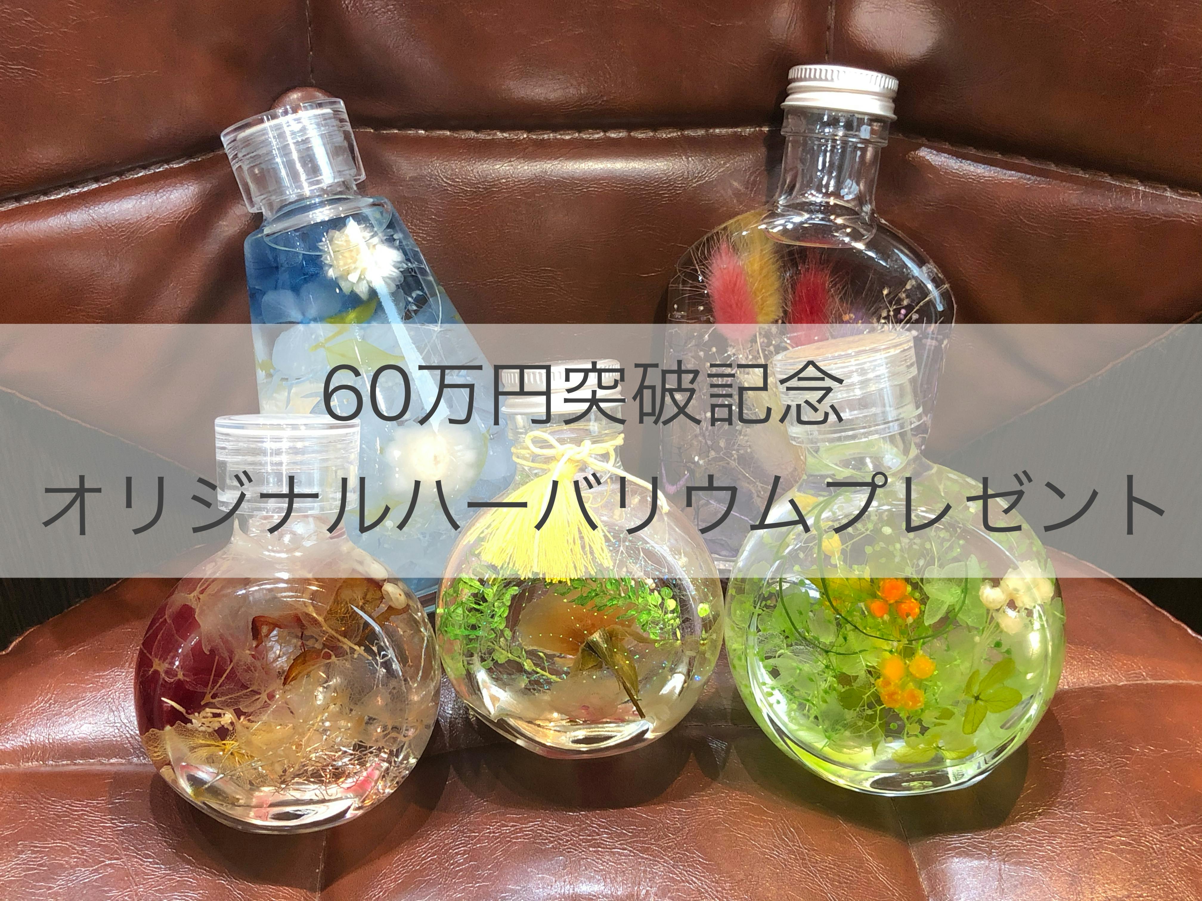 今回は60万円突破記念でオリジナルハーバリウムを5名様にプレゼントしたいと思います。