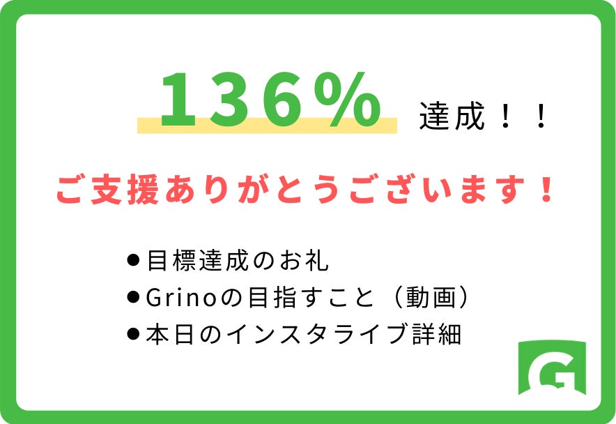 ご支援いただいた皆様にもさらにGrinoを知っていただけると思うので、ぜひぜひお時間ある際にご覧いただけると嬉しいです!!