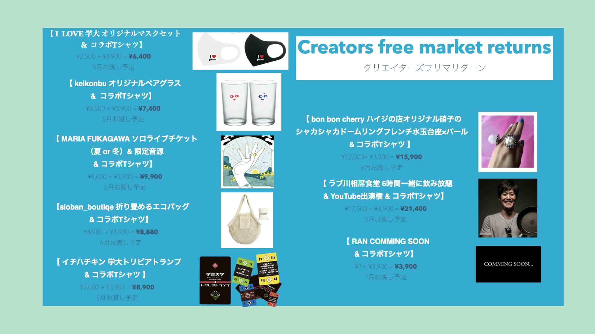 こちらのフリマリターンは全て「コラボTシャツ」とのセット販売で下記詳細です。
