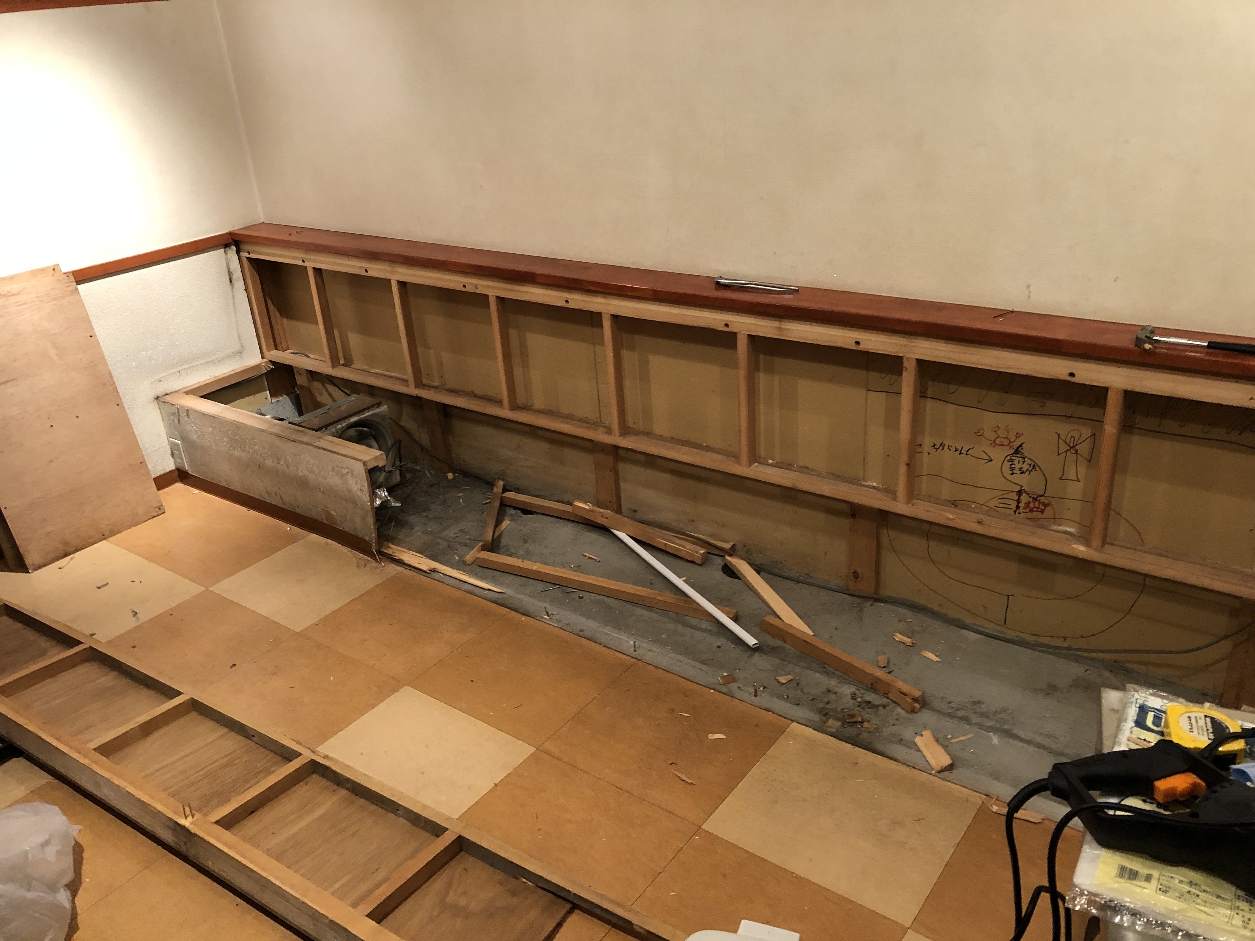 新店長の四代目がある場所も元はラックなのがあり、それを解体したところ。