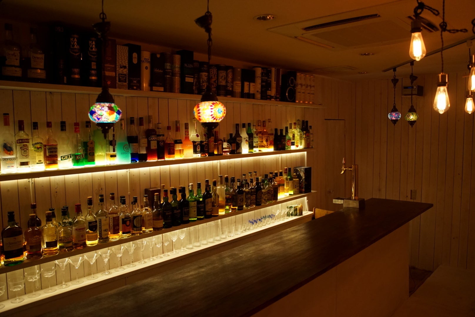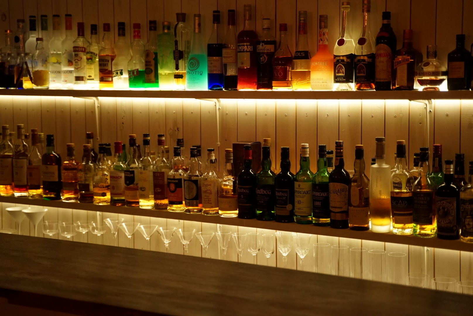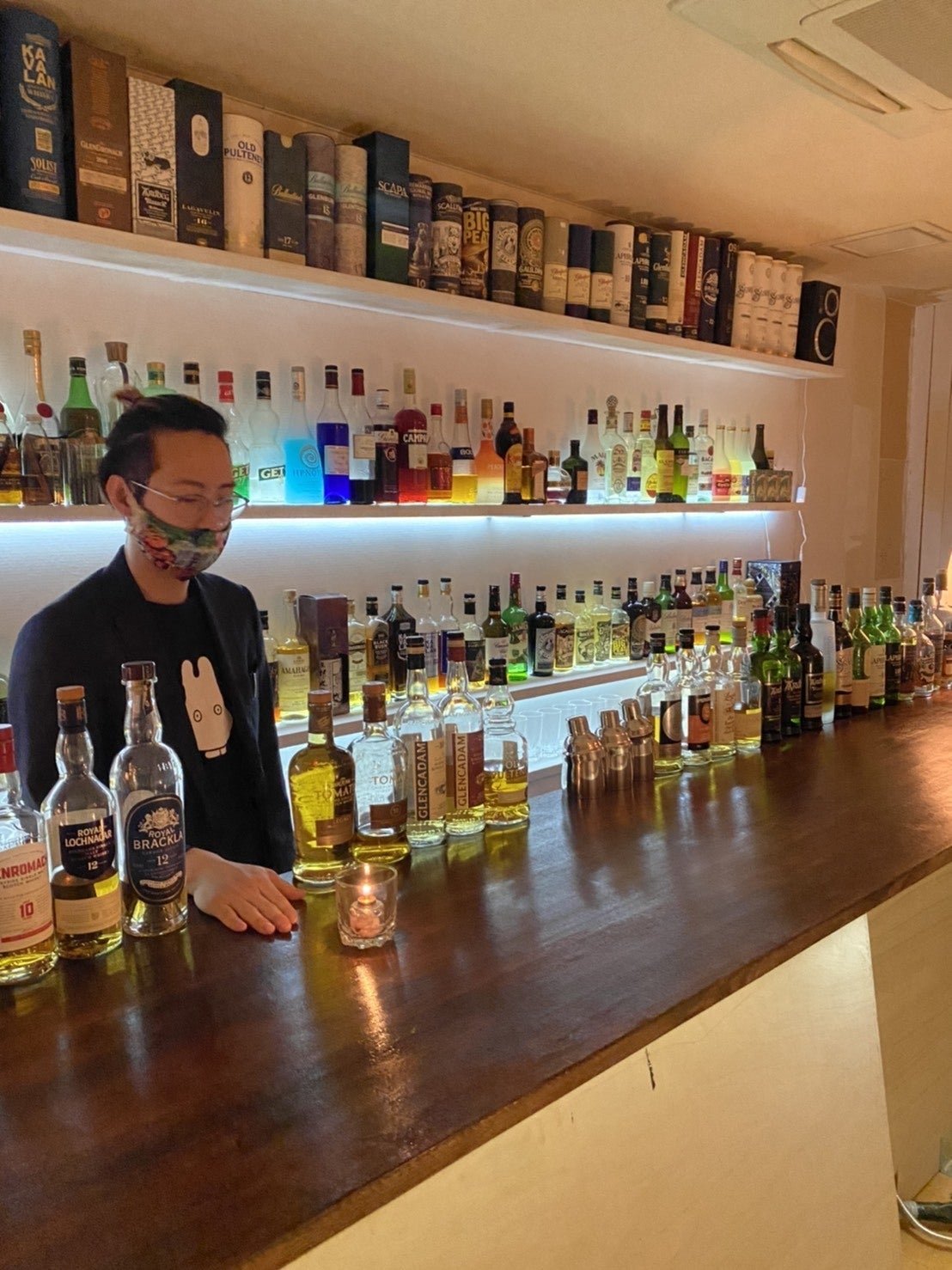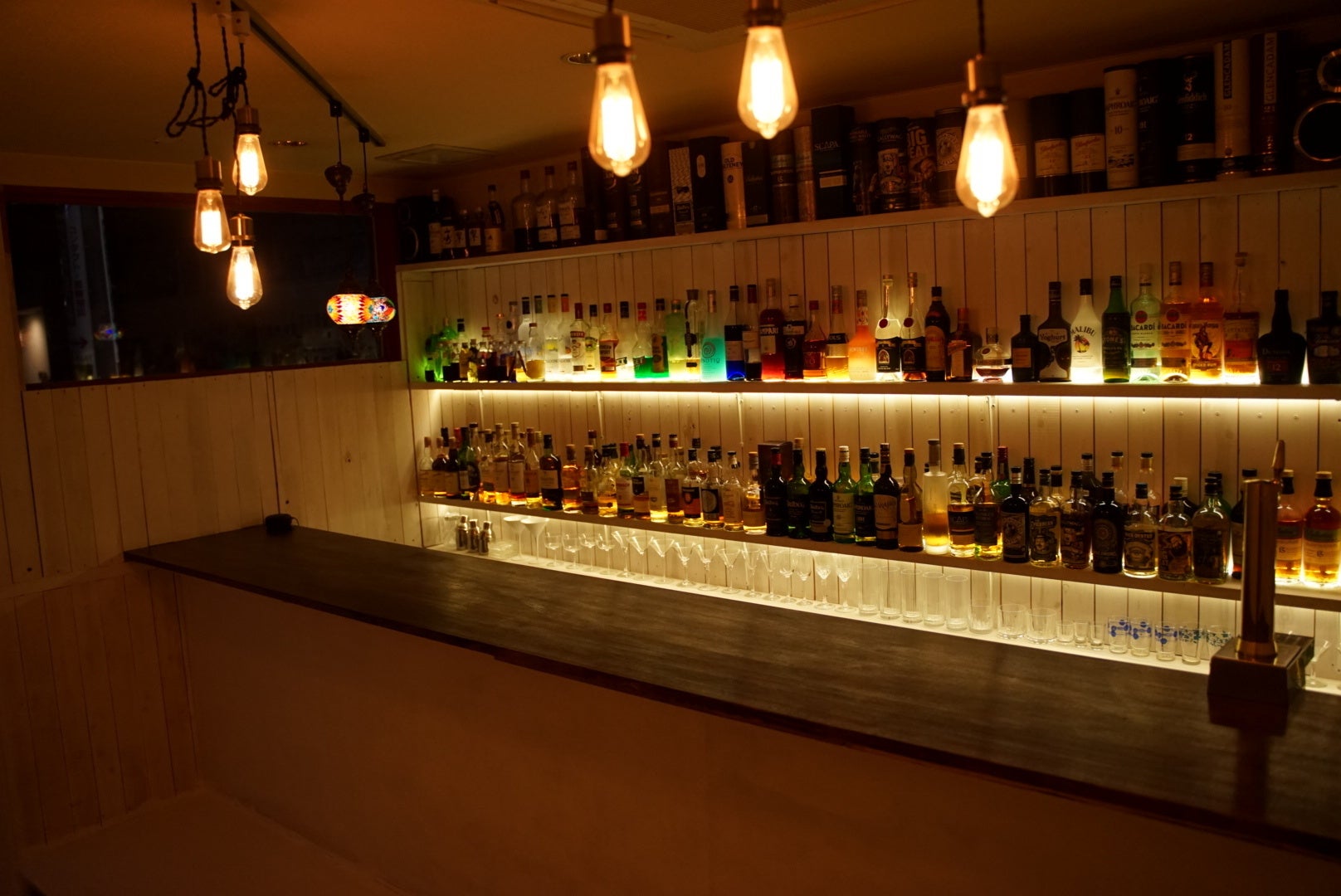 ボトルの背中の壁紙とか、酒棚のライトの色味とか、そもそも床もあげてないし、油鶏角打倶楽部との扉とつけてないし、カウンターも不安定で軋んだらするし、、、