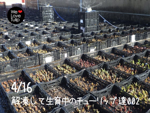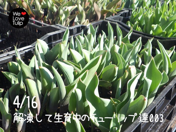 来週からリターン品の出荷作業に入ります。冷凍庫に凍らせてあったチューリップを先日から解凍し、気温に慣らしながら徐々に生育させているところです(002画像)。