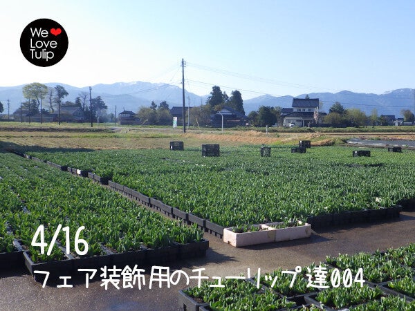 「となみチューリップフェア」では、GW後半もチューリップを楽しめるように装飾入れ替え用のプランター(通称”トロ箱”)を準備しています。これも私たちが担当して生育管理しています。生育を遅らせるために雪深い五箇山で育てていたものを、1週間前にトラックで何往復もして降ろしてきたところです(004画像)。