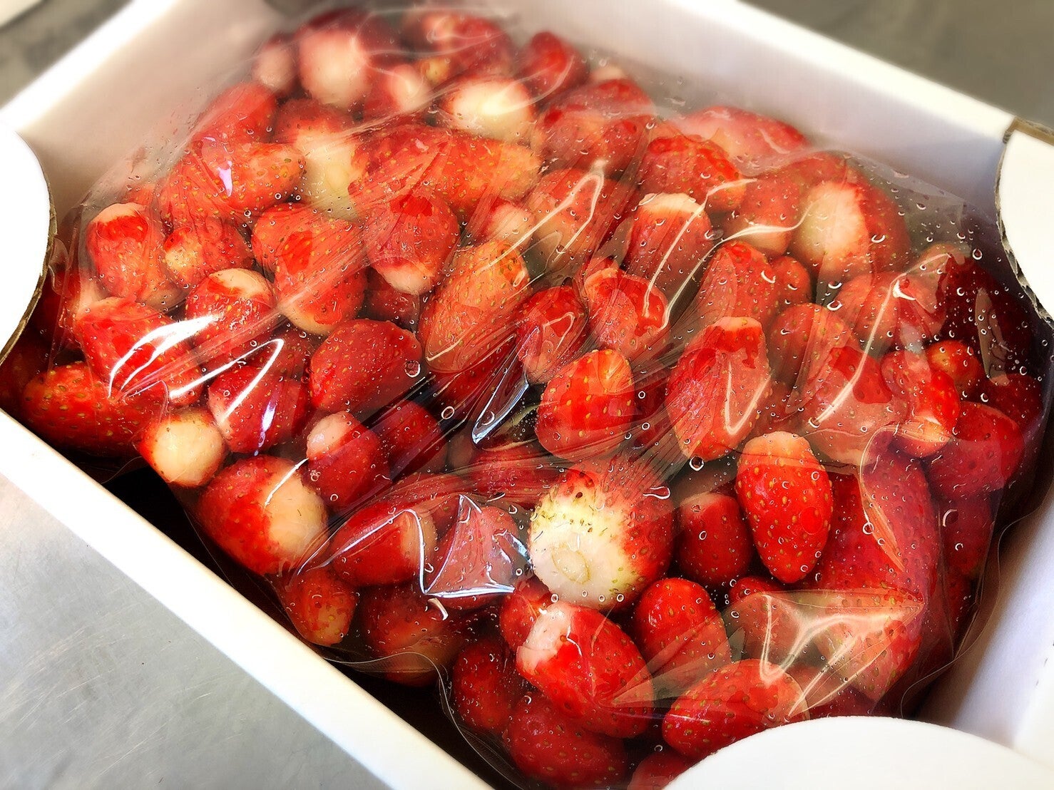 どうしても空気やいちごの表面に付いている水分で霜や氷が付くことがあります。