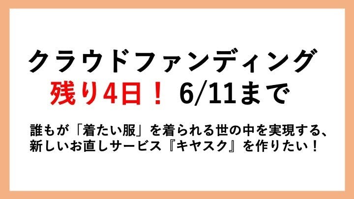 いよいよクラウドファンディングの募集期間が残り4日となりました。