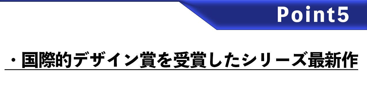 日本のグッドデザイン賞にあたるドイツの"Reddot design award"や中華圏で最も権威のあるデザイン賞の一つで台湾の"Gold pin design award"など、国際的な展示会で高い評価を得たシリーズ最新作。
