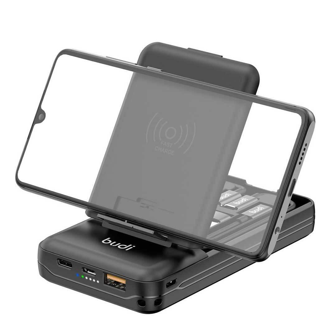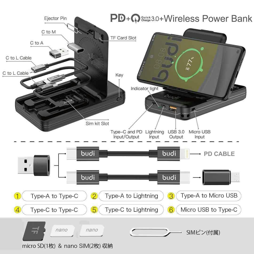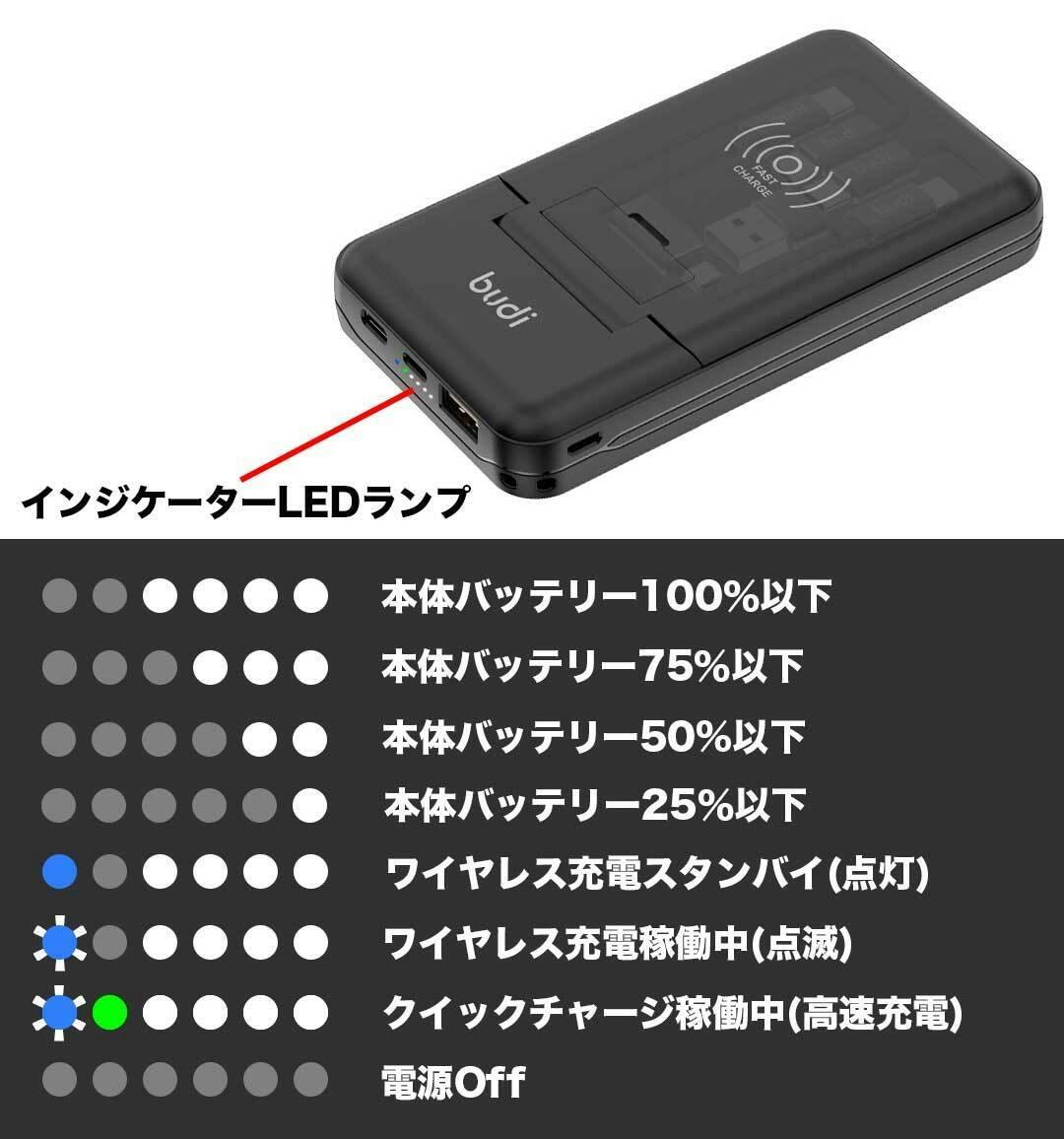 本来のメイン機能である充電部分はワイヤレス充電とモバイルバッテリー2口(USB Type-AとType-C)から3台同時充電が可能なパワフル設計!