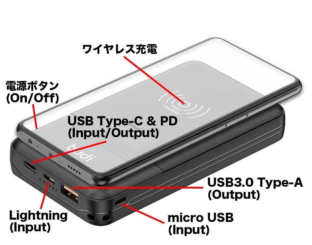 入力は3つあり内蔵バッテリー容量は10000mAh、最新のiphone12なら数値上3.6回充電可能です、大容量過ぎると本体が大きく重たくなるためこの10000mAhが丁度良いサイズ。