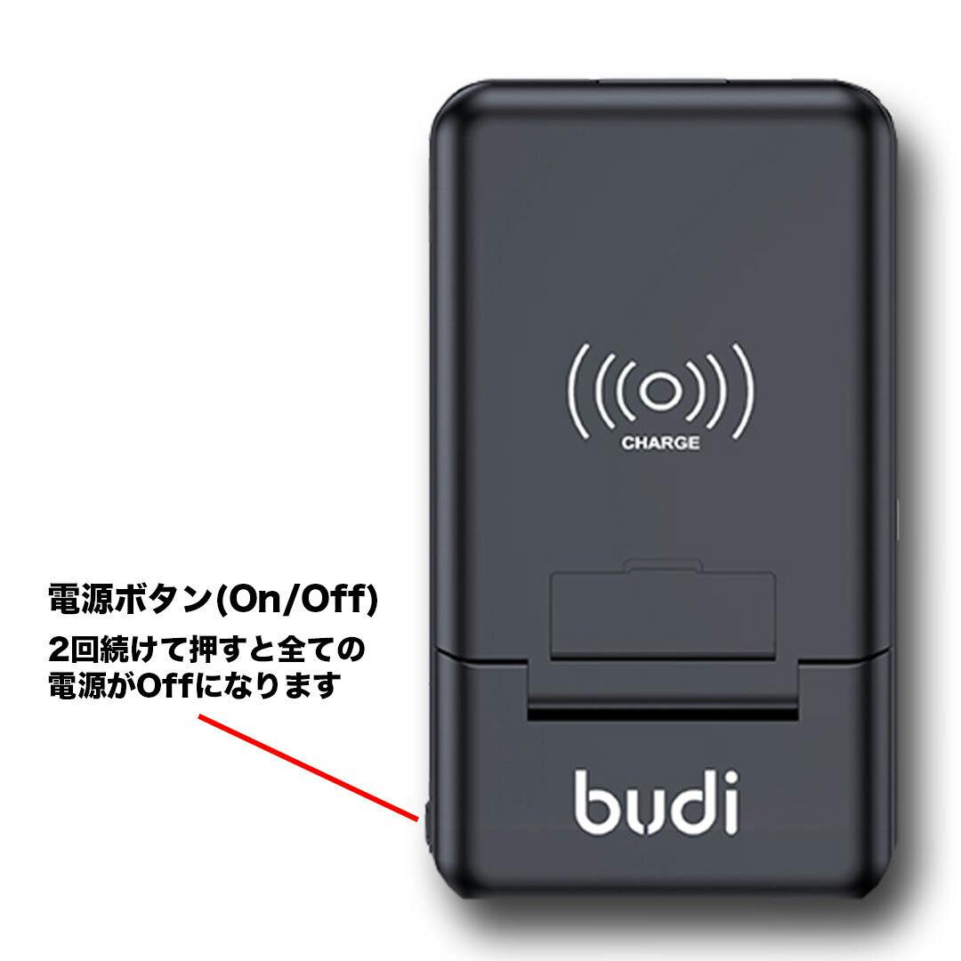 本体上部はワイヤレス充電、側面にモバイルバッテリーの出力が2つあり同時に3台充電可能。
