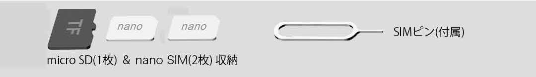 *microSDカード、nanoSIMは付属されていません、SIMピンは標準装備。