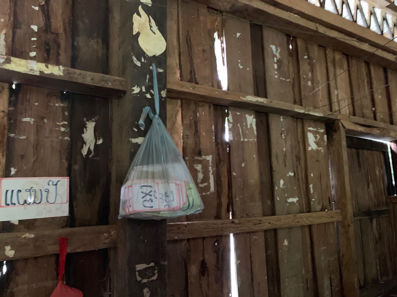 校舎が木造のため、雨による劣化が著しいのが現状です。また校舎内には雨のせいで教材が傷んでしまうのを避けるために、上記の画像のように吊るしているところもあります。