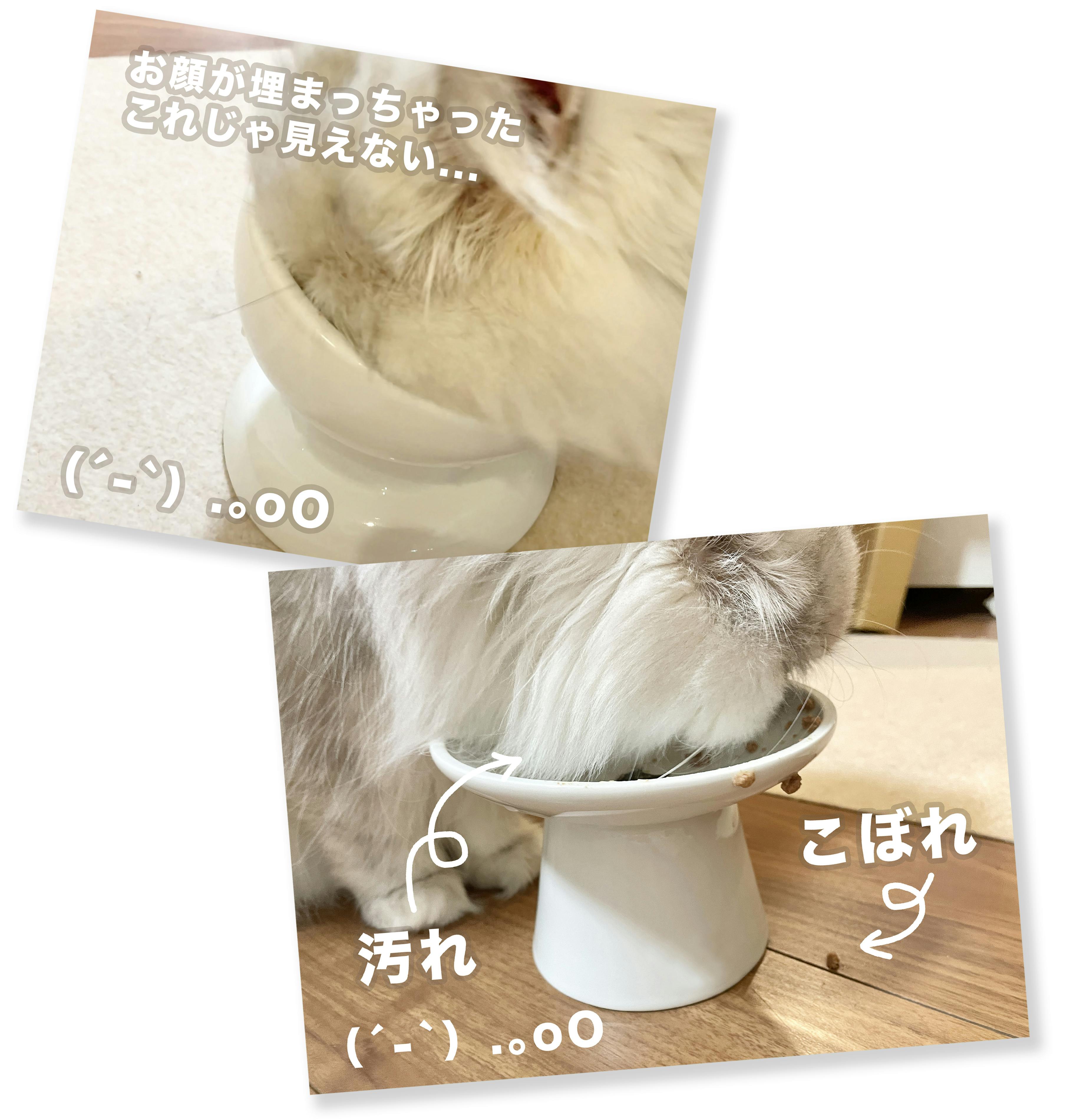 これまで、もっと食べやすく愛猫に優しい器はないものかと、いろいろ買っては試してきました。でも、どこか食べにくそう。これはもう、仕方がない事なんだと思い、なんとなく一番「良さそうな」器を使い続けました。