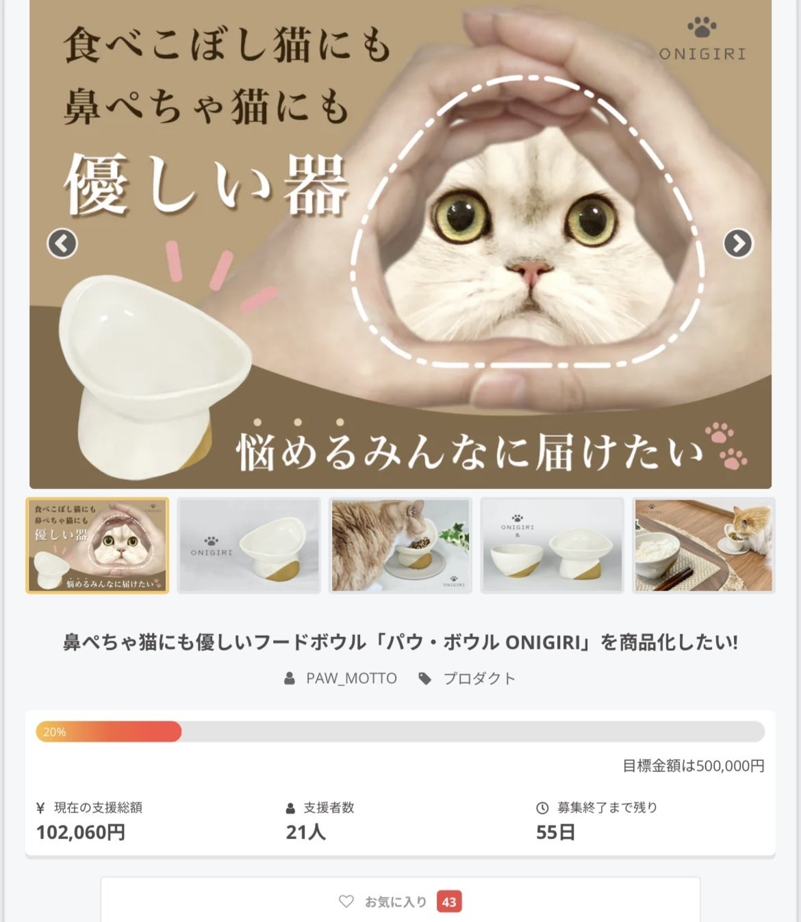公開前から気にかけていただき、開始早々にご支援いただいた猫オーナー様、食べこぼし猫ちゃんや鼻ぺちゃ猫ちゃんを思ってプロジェクトに共感いただいた皆さま、こんなの欲しかった!と言ってくださる猫オーナー様、そして、猫は飼ってないけど活動応援したいとの思いでご支援いただいた方々まで…。