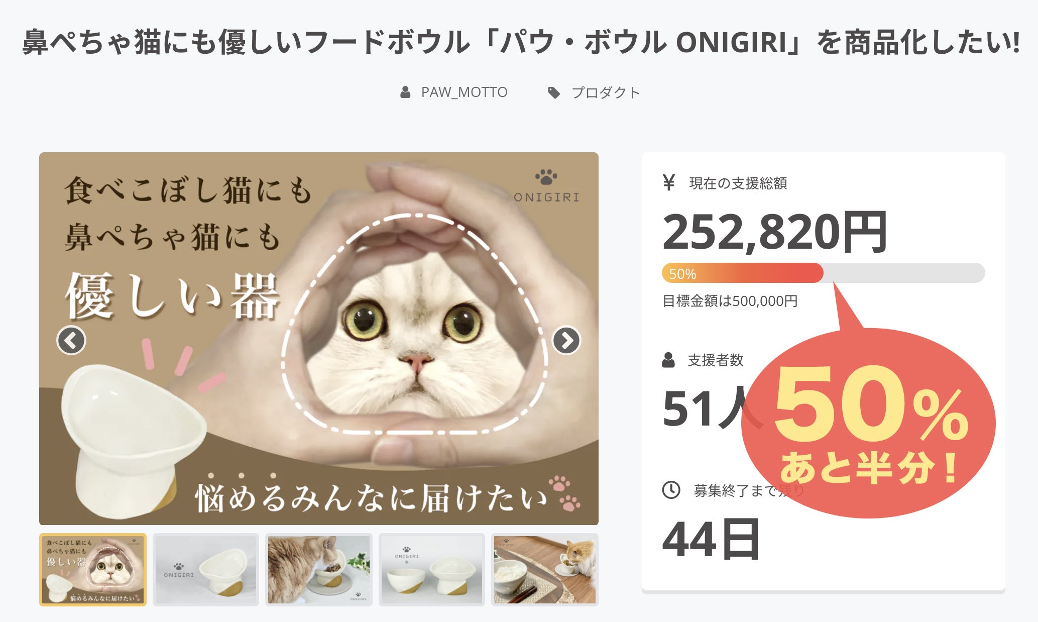 目標まで残り半分。どうぞ、引き続きよろしくお願い申し上げます。