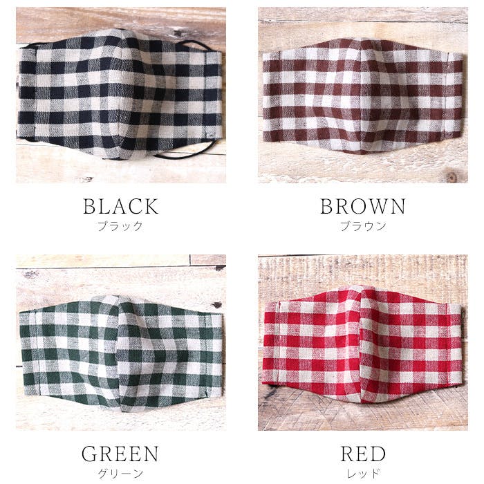 「チェック柄マスク(65)」裏地ガーゼ