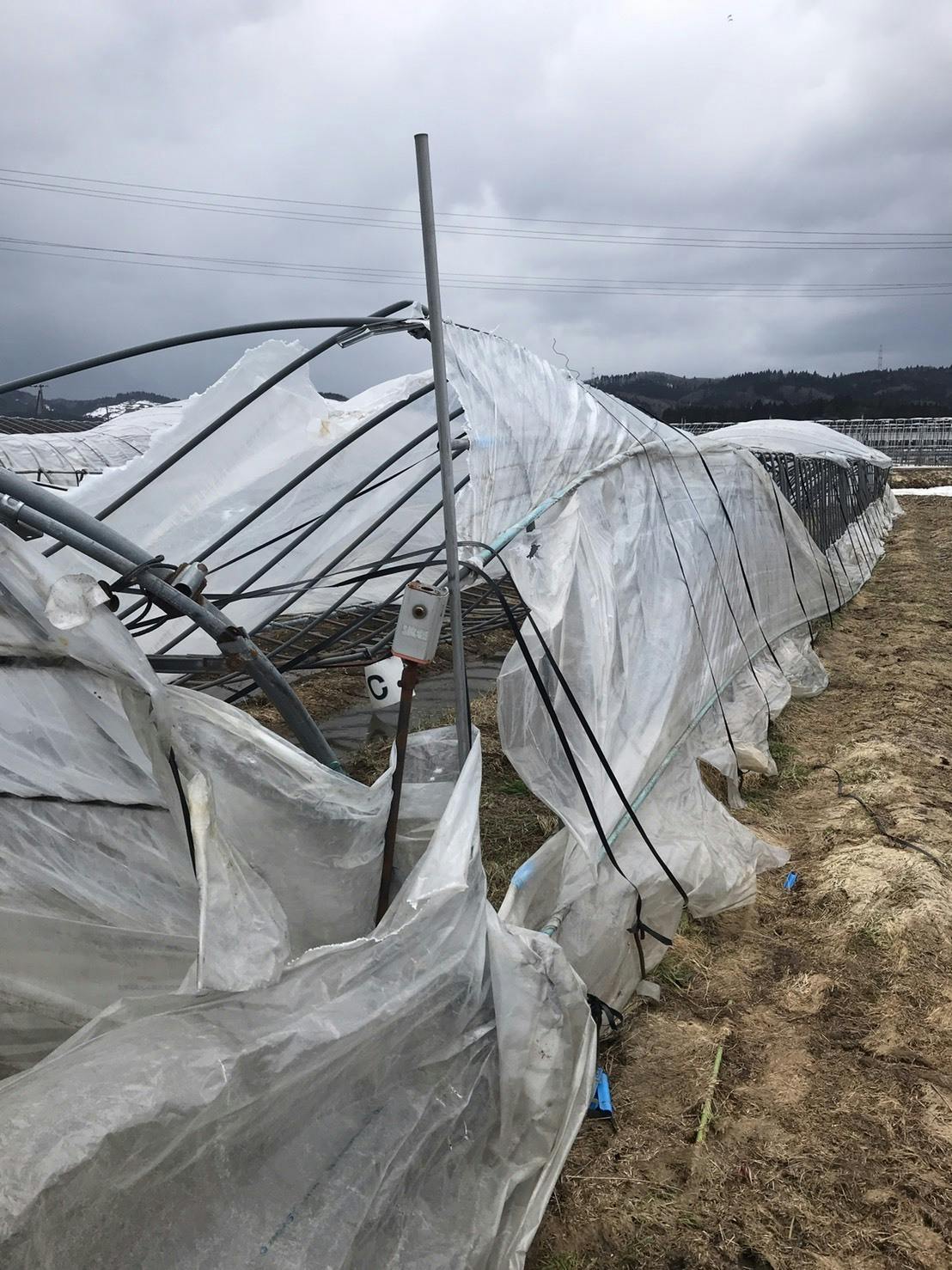 コロナの影響により建設業の方も大変厳しく、またトマトは2020年度までお取引していた関東圏のお客様からのご注文がほとんどなくなってしまいました。しかし通販により何とかトマトを販売することができておりました。これから今年の栽培を!と思っていたところ、この度の豪雪でハウスが倒壊、所有している5棟のハウスのうち4棟が全壊してしまいました。