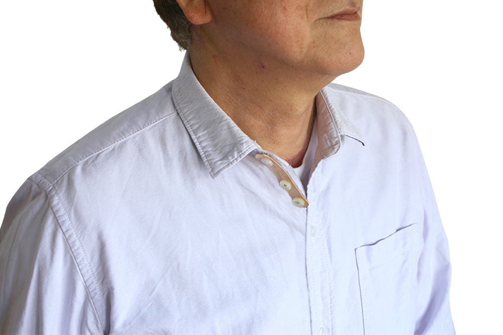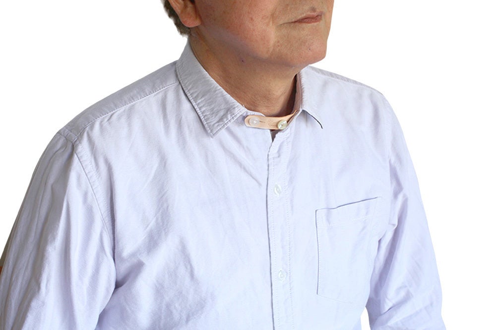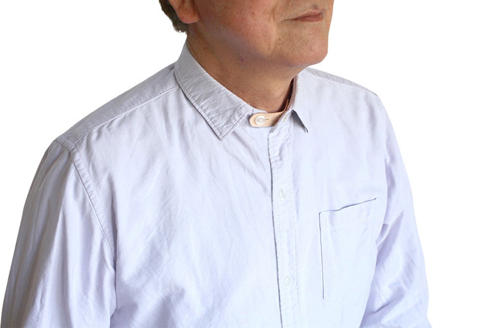 前回プロジェクト、シャツの襟元をラクに整える「RAKUBI」の進化形です。1つで25ミリと45ミリの両方に対応します。