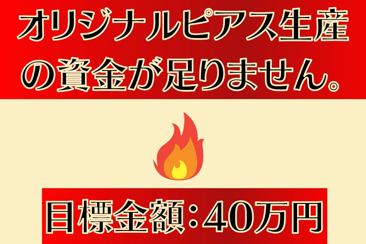 目標金額は40個(1ペア1万2800円のピアスを30個ほどご注文頂くことを第1目標に設定しております。)