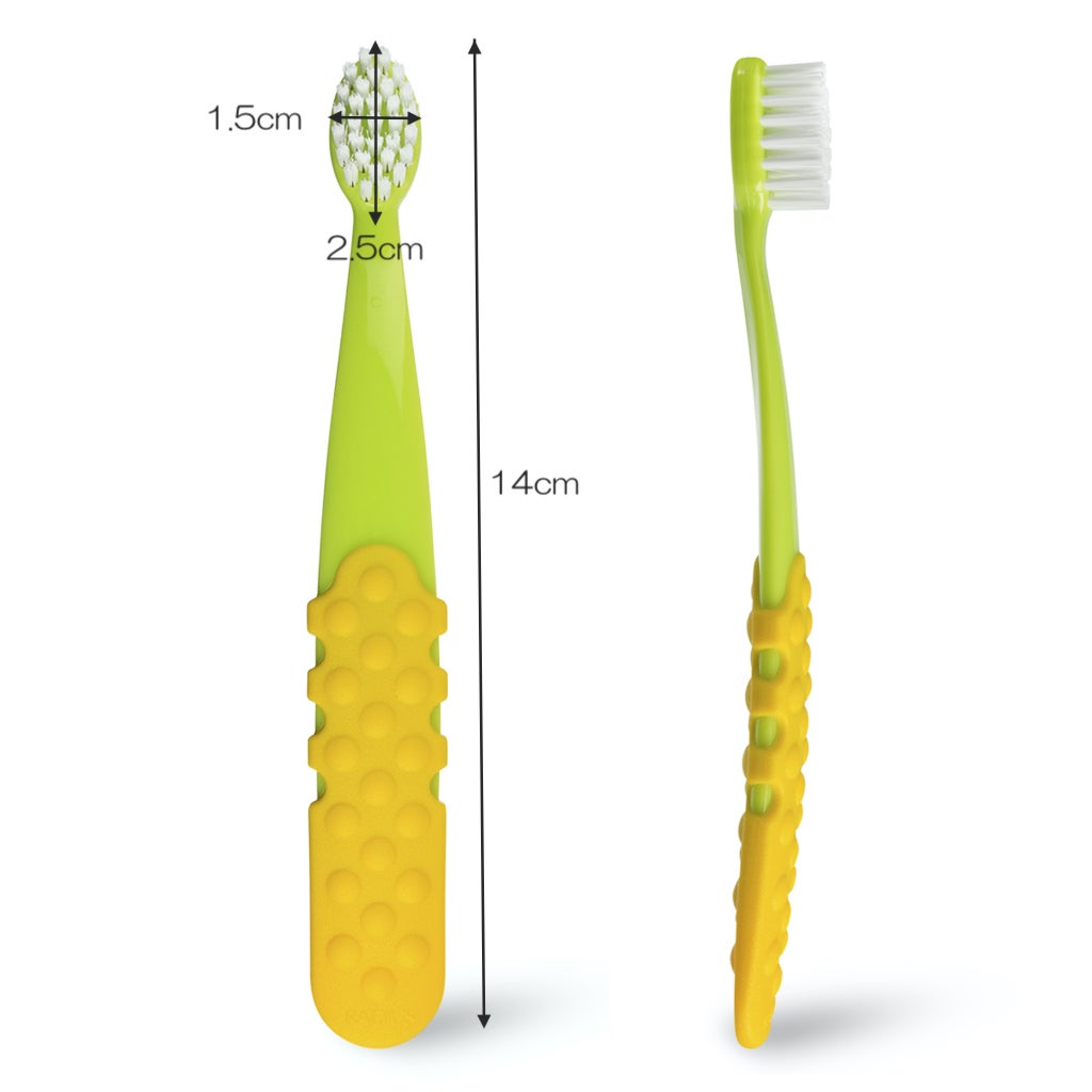 生後18ヶ月以上の子どもの小さな歯と歯ぐきを効果的にケアするために設計された歯ブラシです。