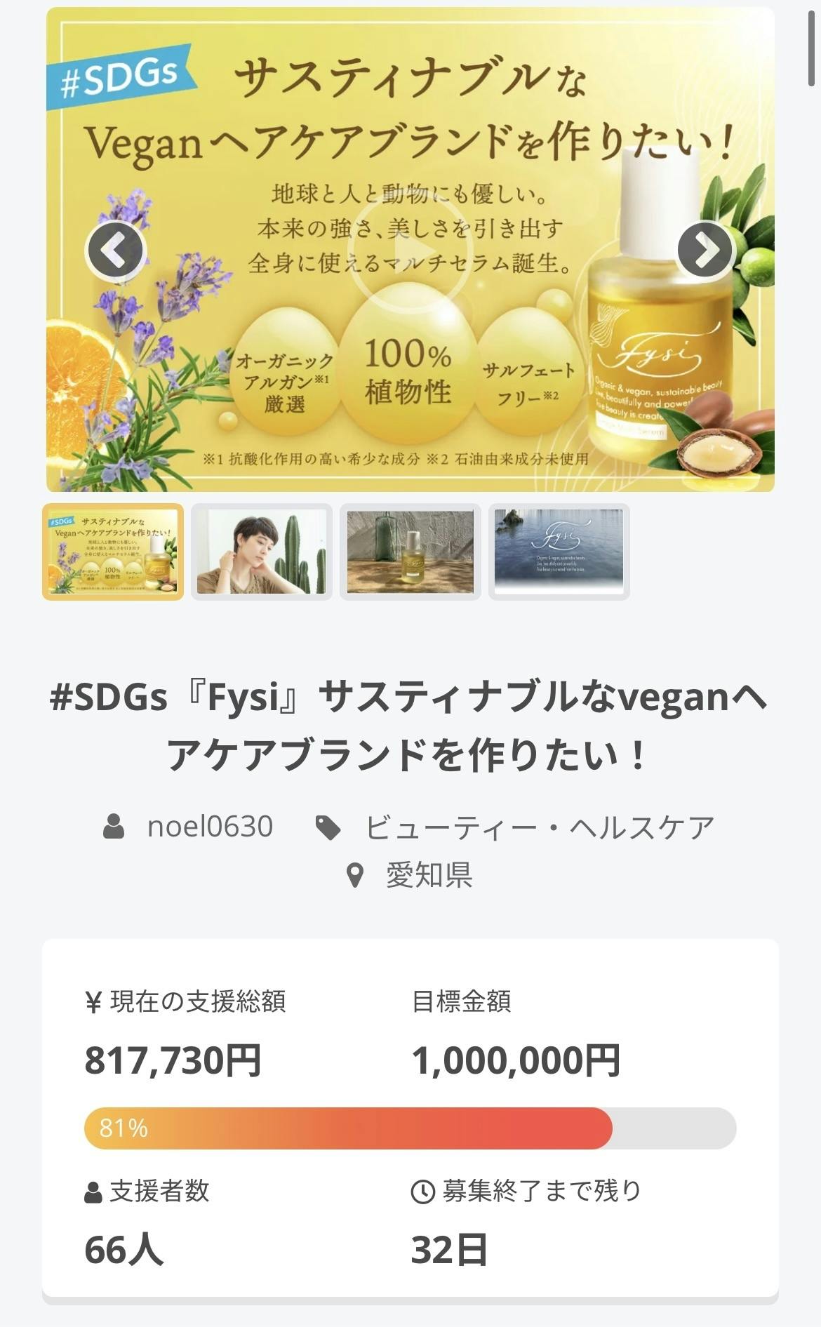 ネクストゴールは300万円ご支援頂きますとFysiシャンプーを制作させて頂く事が決定しているのですが、100万円から300万円はちょっと飛びすぎな気もしますので、間の200万円達成したら何か皆様に楽しんで頂ける様なイベントを考えたいと思います。