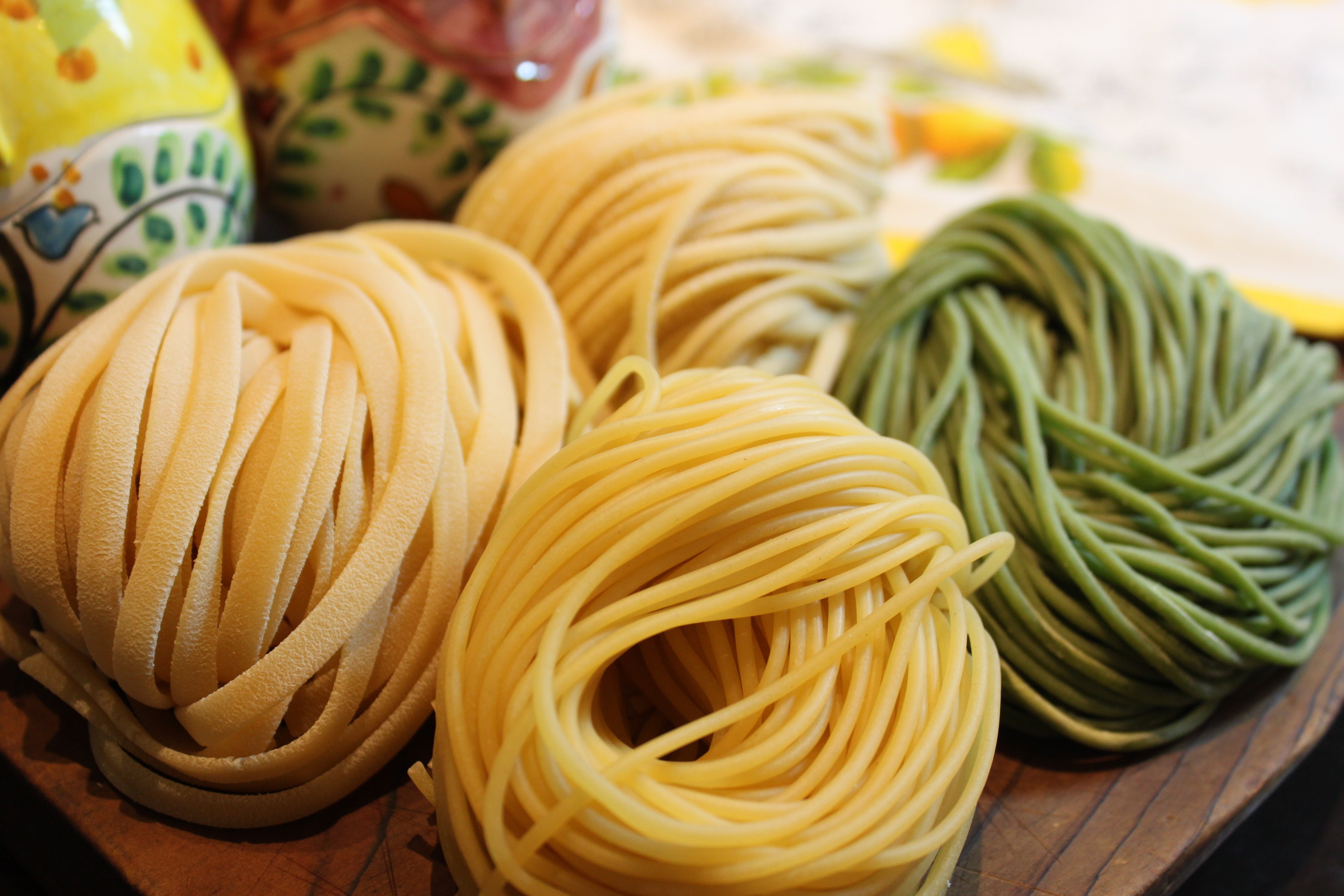生パスタはソースに合わせてスパゲッティと幅広タイプのフェットチーネをご用意しています。