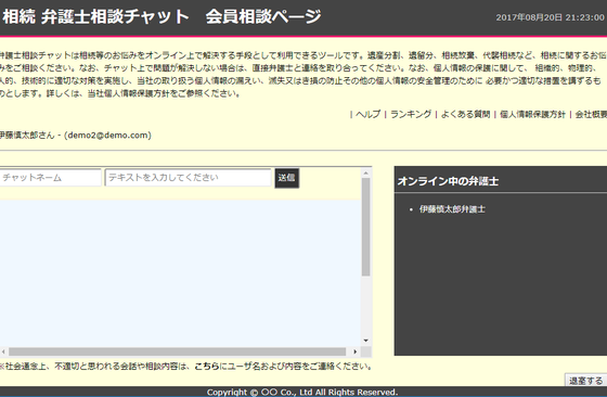 テスト(弁護士) ユーザー名:demo2@demo.com、パスワード:demo2