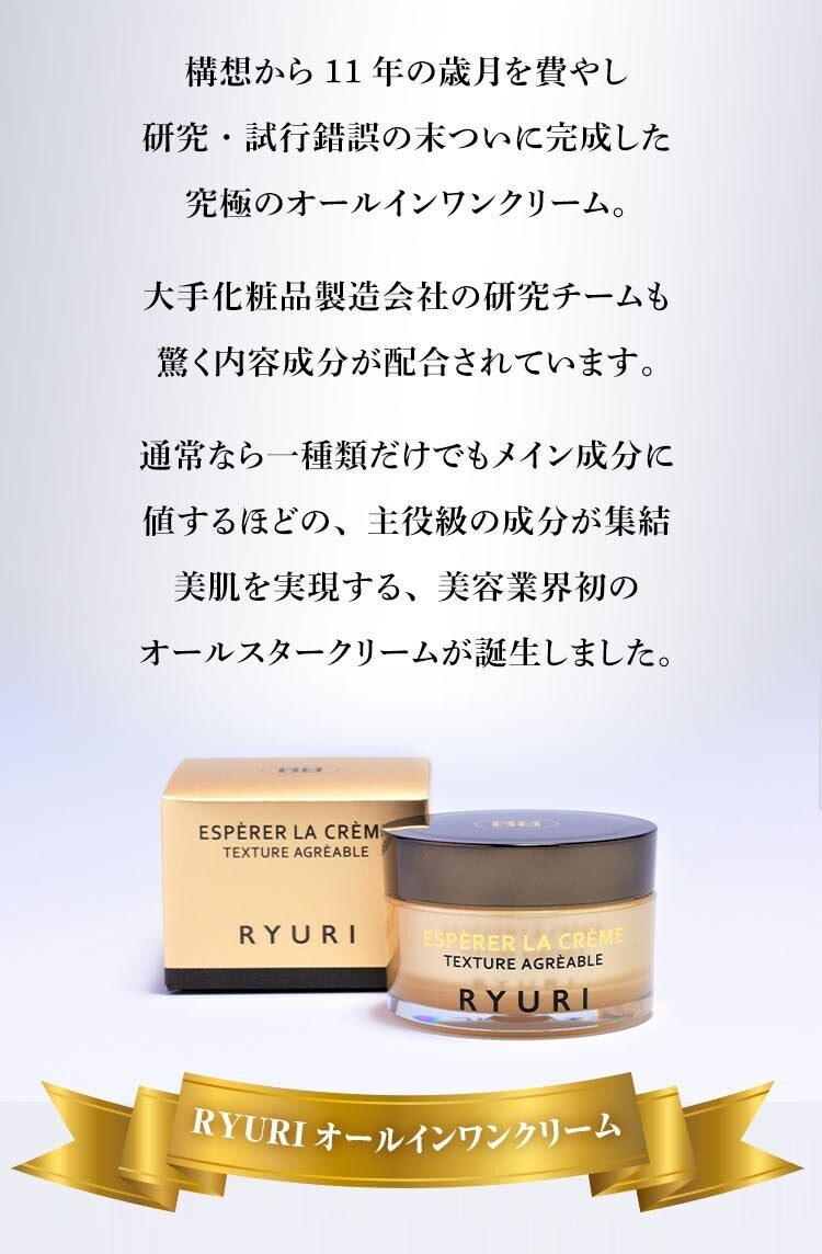 『RYURIエイジングケアクリーム』でお肌が美しくなる実感・輝く喜びを感じていただければ幸いです。