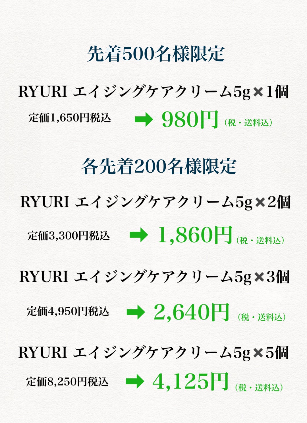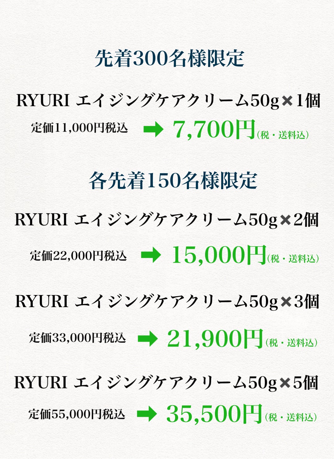 どこの化粧品会社もまねできない、こだわり抜いたRYURIエイジングケアクリームを発表したい。しかも毎日タップリ使用してお手入れが継続できる価格で、美しくなりたい全ての方に提供したい。