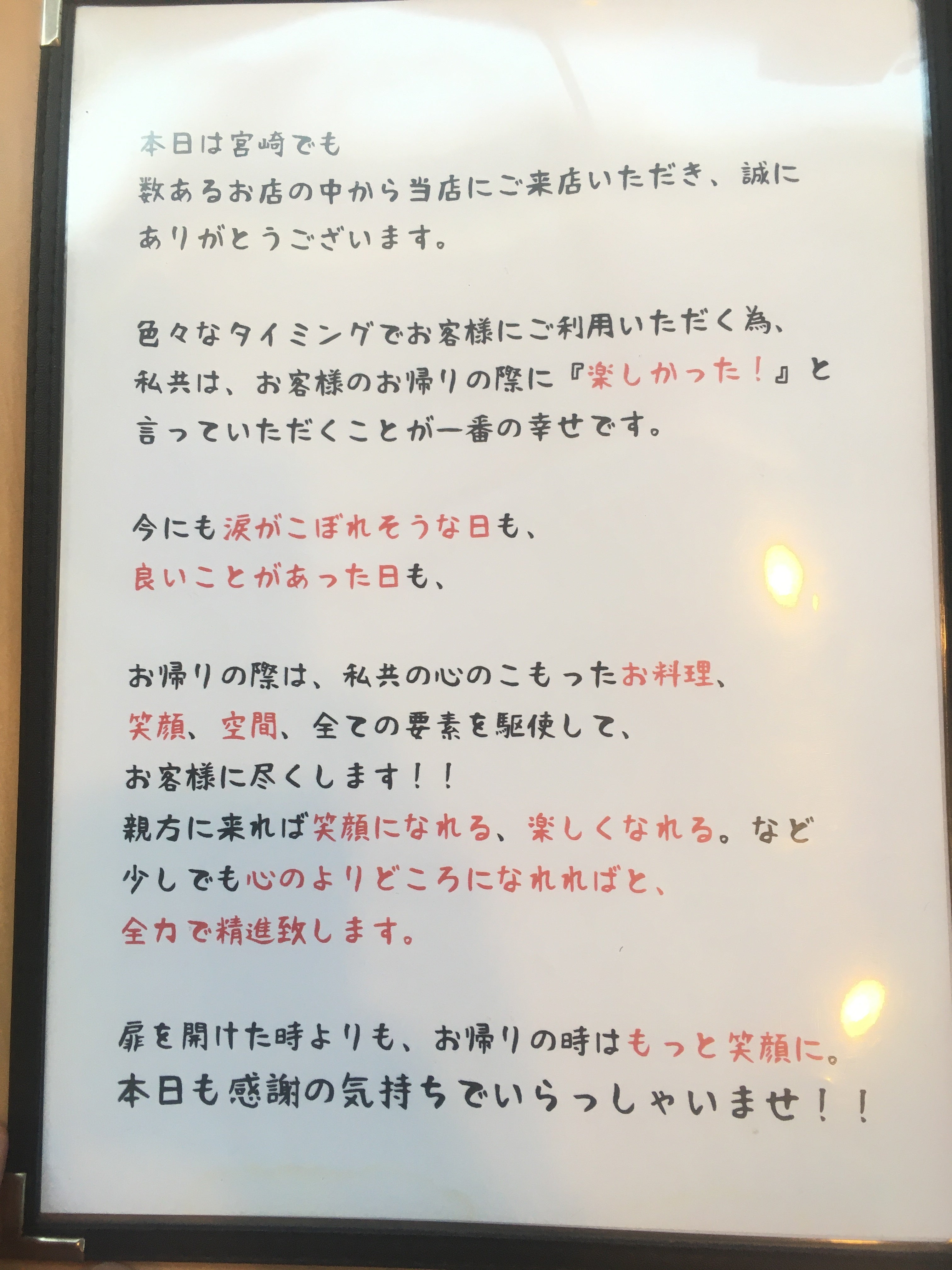 その理念は私の心に突き刺さり、今のお店に来てくださるお客様に毎回楽しんで帰ってくださいねー!と伝える事はできないけれど、全てのお客様に思いが届く様、メニューへ綴っています。