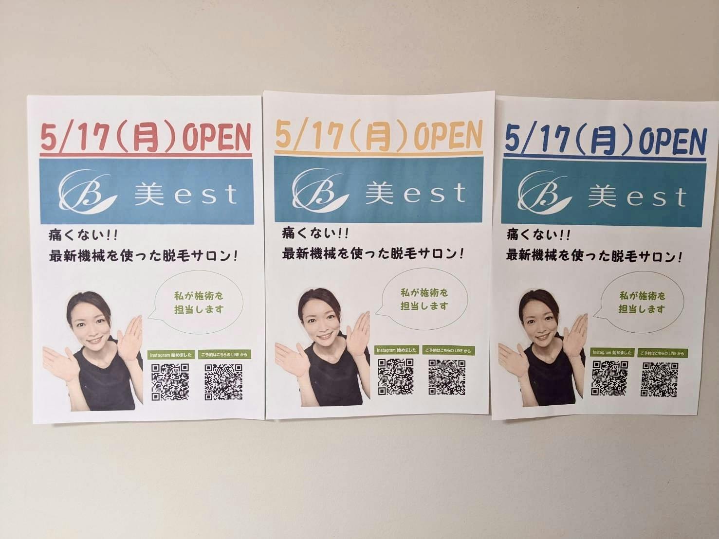 • 5/17(月)脱毛サロン美estオープン致しました!皆様に愛されるサロンになる為の努力を惜しまず頑張ります!★プロジェクトは5/31(月)まで★ご支援宜しくお願い致しますm(_ _)m もっと見る