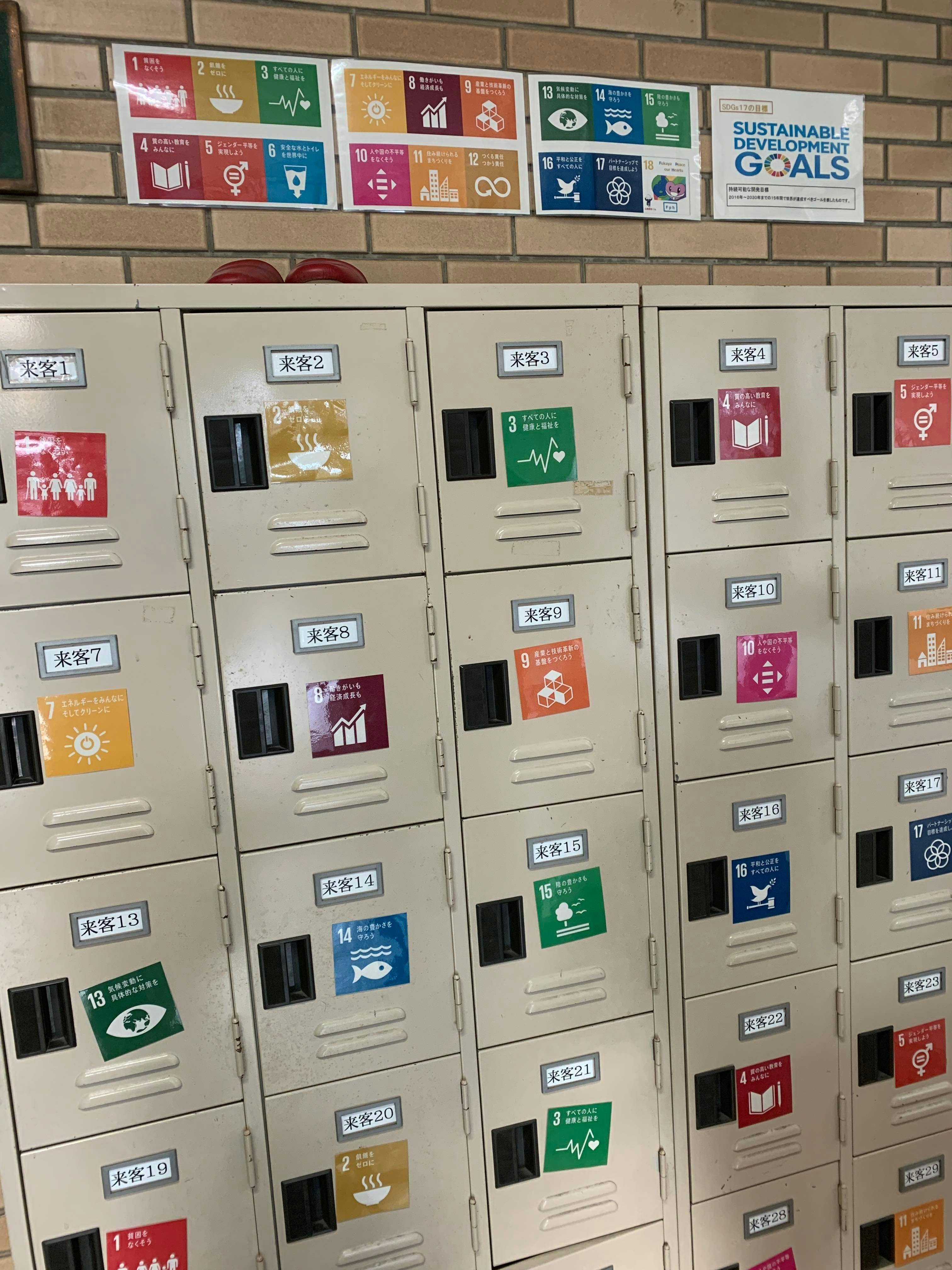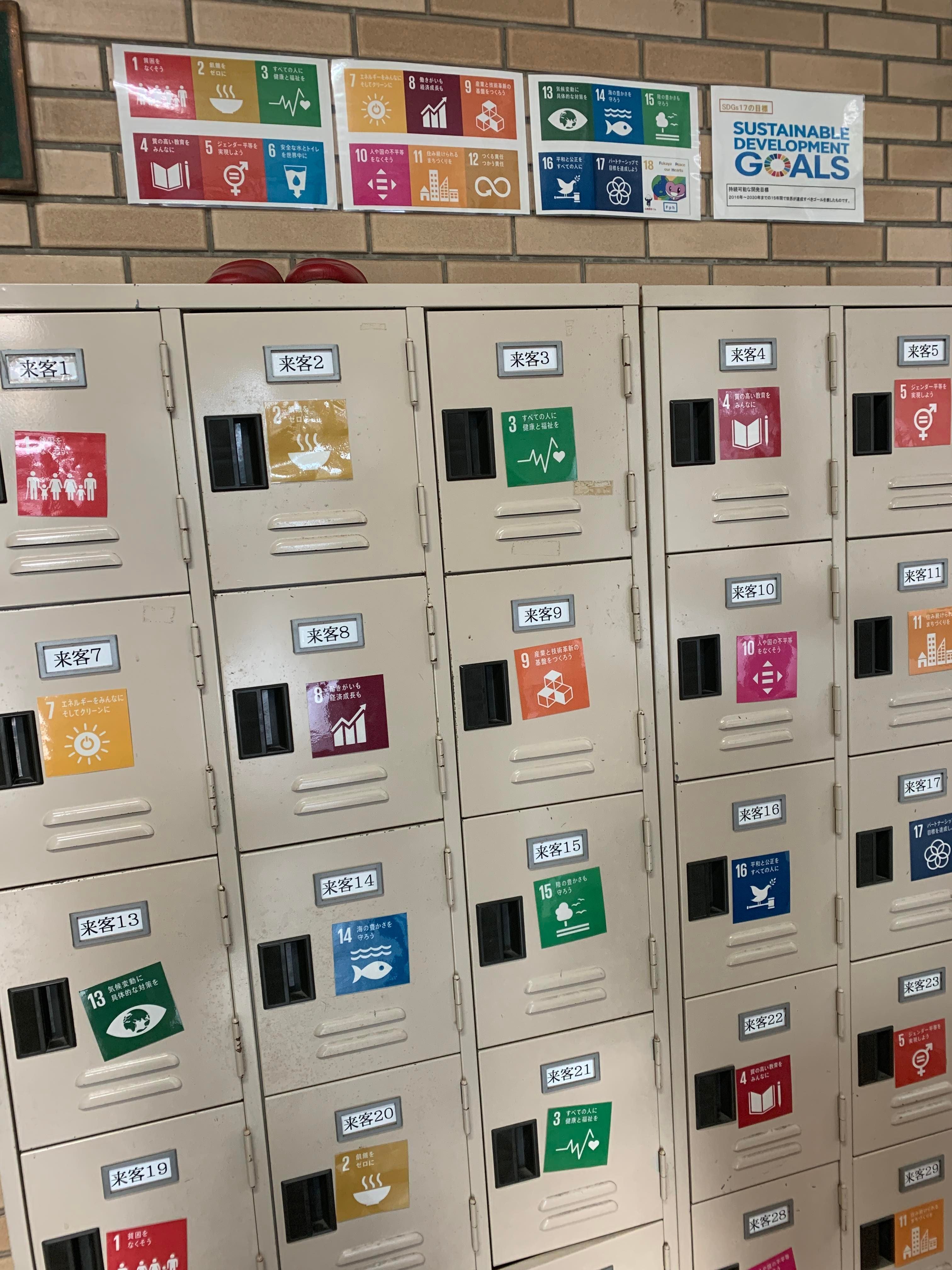 当日私たちが訪れた職員室玄関の来客用靴箱には、ずらっとSDGsの17のアイコンが並んでおり、実施側の私たちの期待も高まります。