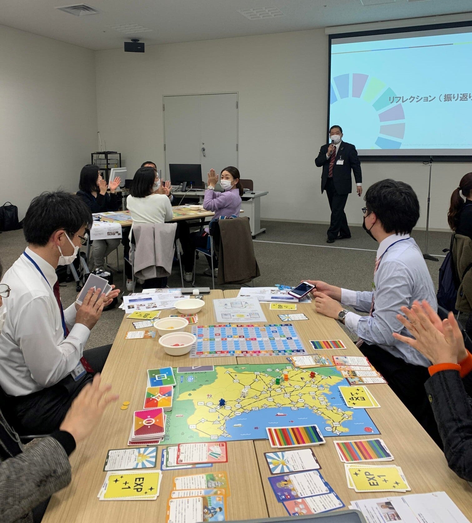 12月22日に横浜市ユネスコスクールESD推進校で勤務されている先生方へ神奈川県版SDGsボードゲームの説明&体験会を行いました。
