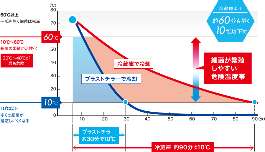危険温度帯という一番感染リスクが高い温度の時間を短時間で冷凍を済ませるかということが