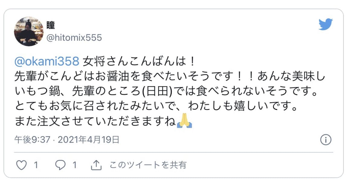 一人もつ鍋がどれだけの方に必要とされているのかということを知ることも