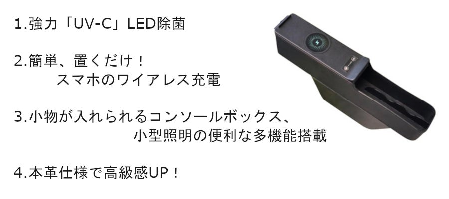 2021/04/20 17:19シートサイドBOXはUSBケーブルを使用するため車内だけではなく、様々なシーンでワイアレス充電やUV-Cにて除菌することができます。使用場所の例ご自宅の寝室で活用就寝前にメガネやスマートフォンなどを除菌。除菌したスマートフォンはそのまま置いてワイアレス充電し、メガネは小物入れに収納。オフィスのデスクで活用オフィスへ着いたら、通勤時に使用した小物(スマートフォンやマスク、定期入れなど)を除菌。小物入れへ文房具など良く使用する小物を収納、スマートフォンを置いてワイアレス充電。車内はもちろん様々なシーンで大活躍のシートサイドBOX。気になることやその他ご相談などございましたらお気軽にお問い合わせください。 よろしくお願いいたします。 もっと見る