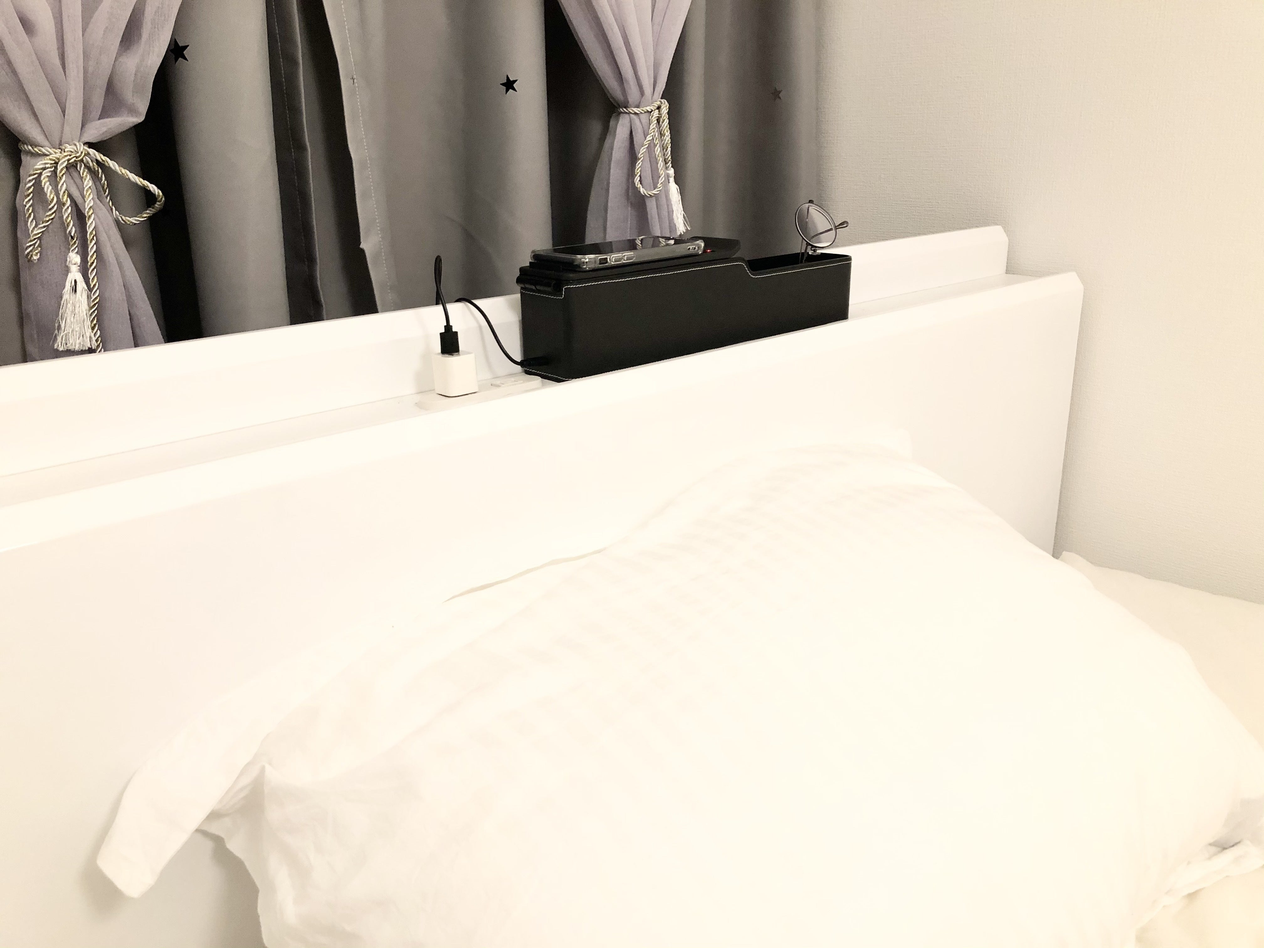 寝る前に簡単置くだけでスマホを充電!コードも邪魔にならない!