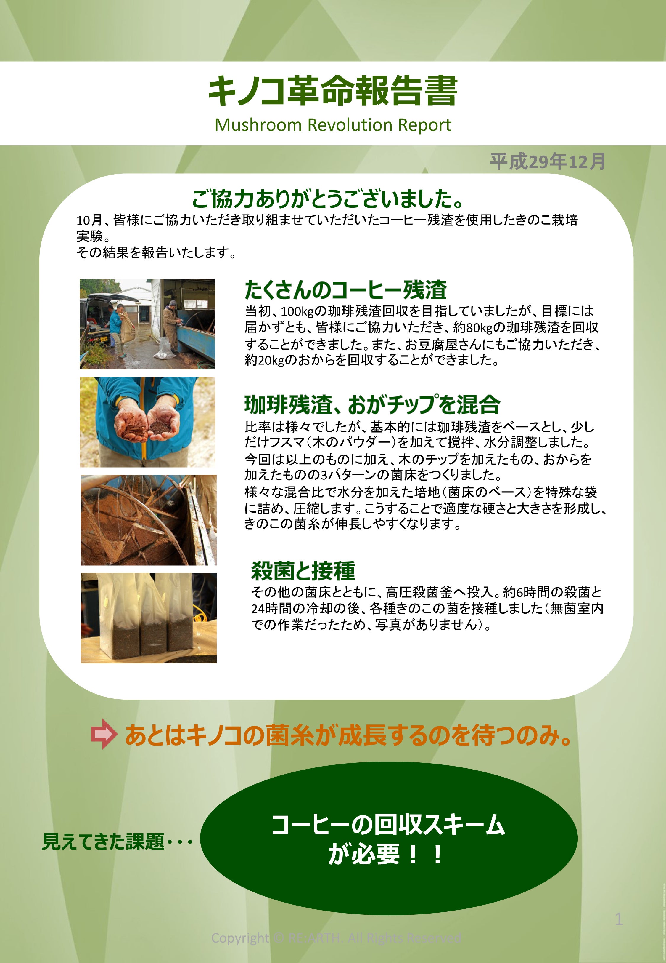 日本に帰国後、コーヒー残渣を使用したキノコ栽培の実験をスタート。